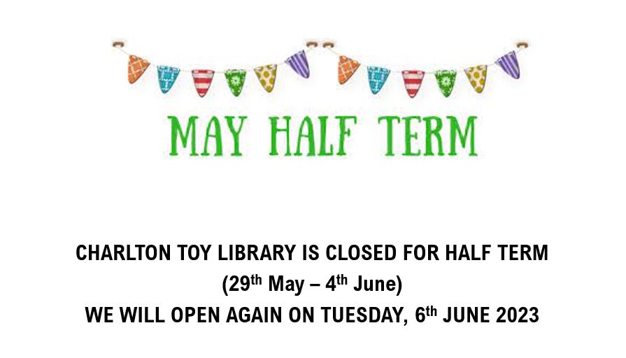 Charlton Toy Library will be closed during the May half-term (29th May – 4th June). We will open again on Tuesday 6th June 2023.